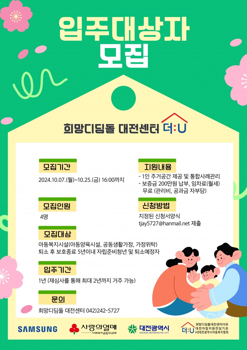 [모집]희망디딤돌 대전센터 더유 자립생활실 입주대상자 모집